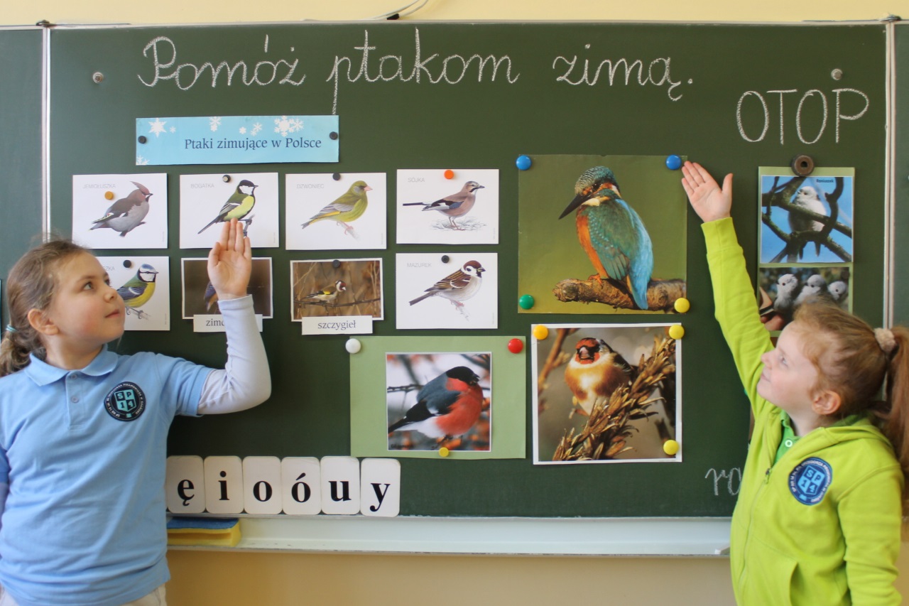 Dzieci z klasy IA przyłączyły się do proekologicznych działań Ogólnopolskiego Towarzystwa Ochrony Ptaków (OTOP), które od 34 lat, przy współpracy BirdLife International, zajmuje się ochroną ptaków. Uczniowie IA poznali najpierw niektóre ptaki zimujące w Polsce, a wśród nich - uroczego raniuszka, który jest symbolem OTOP. Znajduje się w logo tej pozarządowej organizacji. Rozpoznanie raniuszka w terenie nie sprawia większych trudności, ponieważ tę małą kulkę piór z ogonem dłuższym od niej samej i parą czarnych jak węgielki oczu, nie da się pomylić z żadnym innym ptakiem. Ta puchata kulka z sympatyczną „mordką” tak zauroczyła wychowawczynię kl. IA, że od 26 lat jest wierną członkinią i wolontariuszką OTOP. Niestety raniuszka nie tak łatwo wypatrzeć na Siedlcach, choć raz się zdarzyło. Za to sikorek bogatek i modraszek jest mnóstwo, co nas bardzo cieszy. Upodobały sobie nasz szkolny ogród, a ostatnio dołączyły do nich kawki, kosy i wrony siwe.
