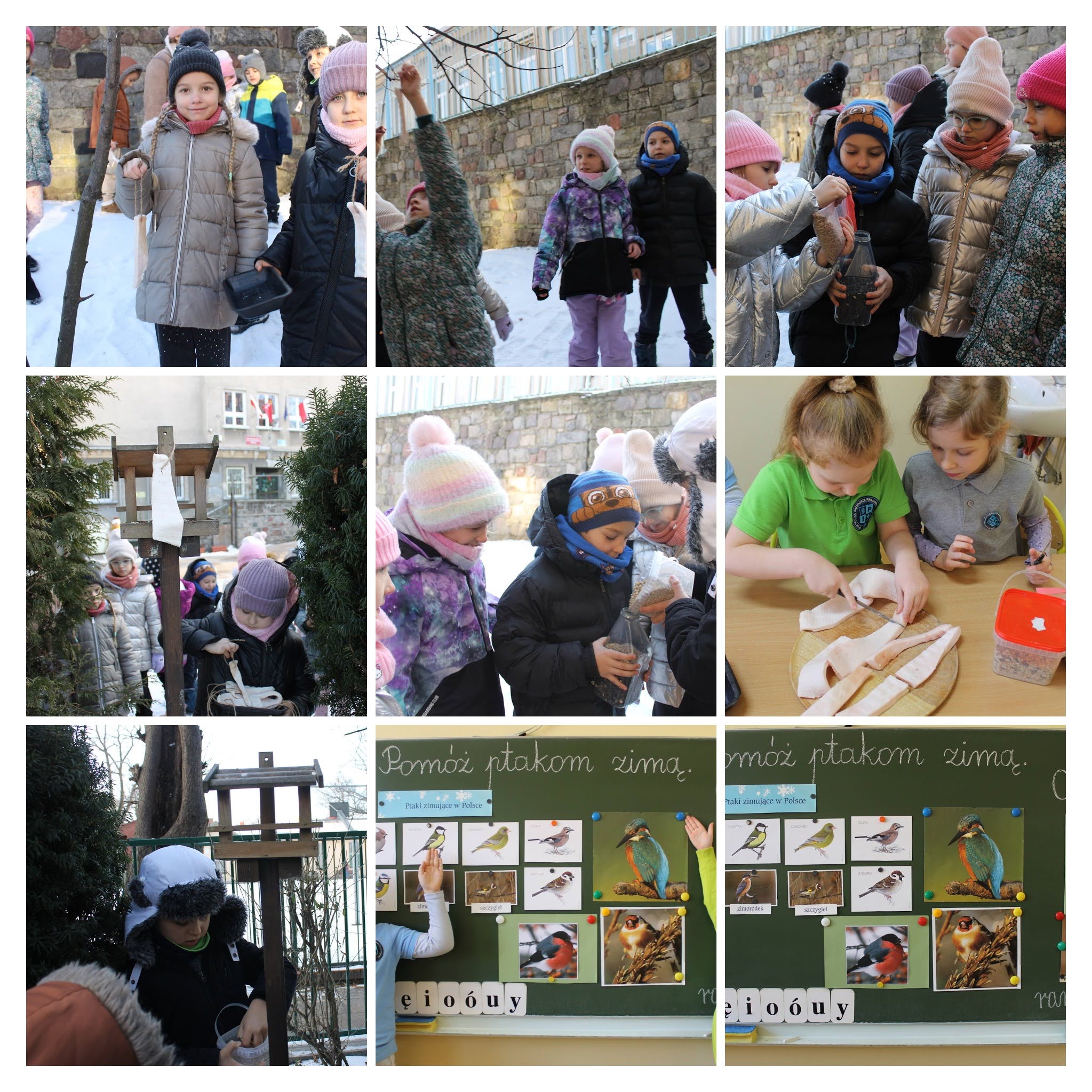 Serdecznie dziękujemy naszym Paniom z obsługi, które systematycznie wsypują ziarna do karmników, a my będziemy im w tym pomagać. Doskonałym miejscem do obserwacji ptasiej stołówki jest nasza szkolna stołówka. Gdy już kończymy jeść swój obiad, lubimy podglądać jedzące ptaki.