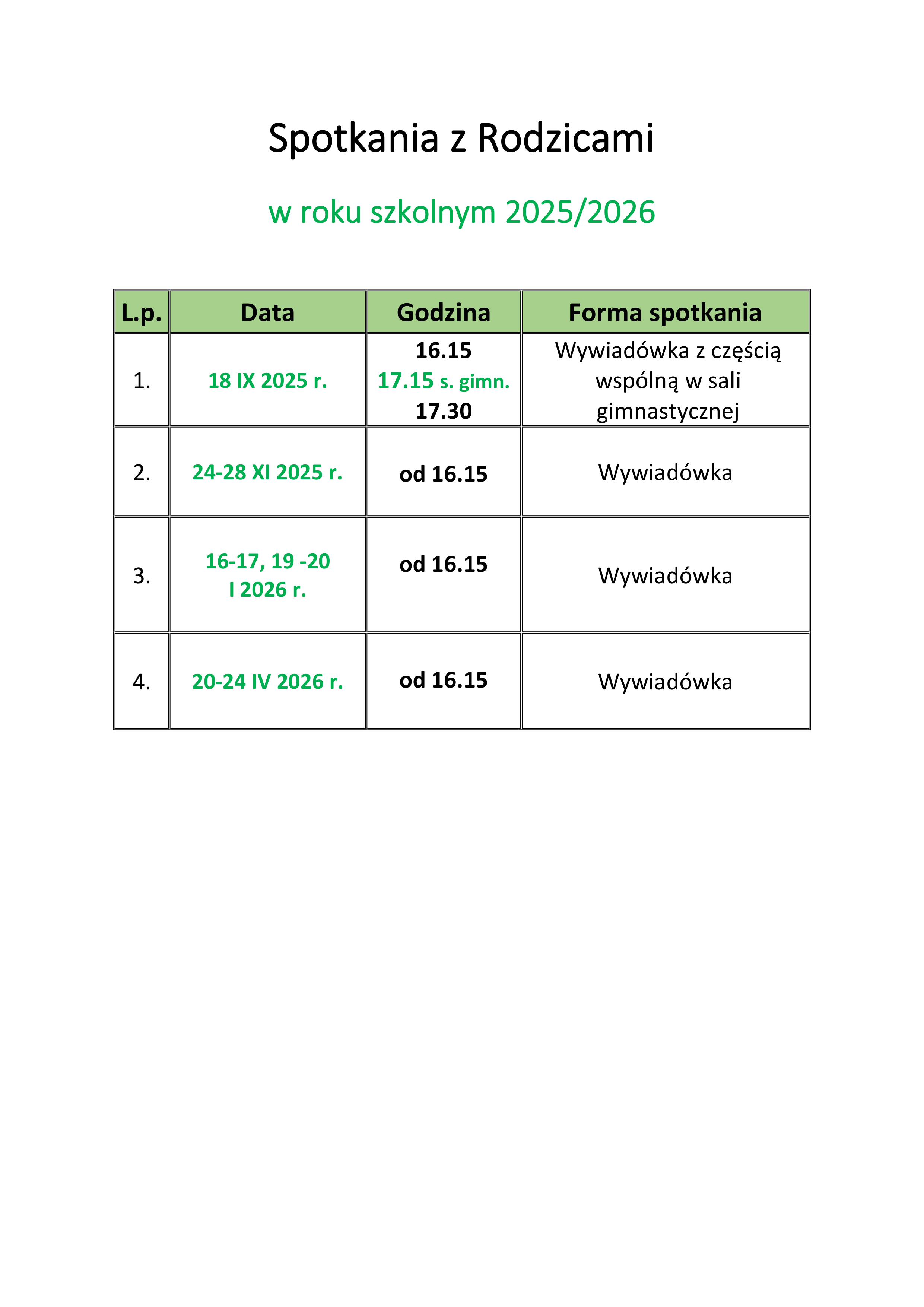 Zebrania 2025/26 - Szkoła Podstawowa nr 14 im. ks. Grzegorza Piramowicza
